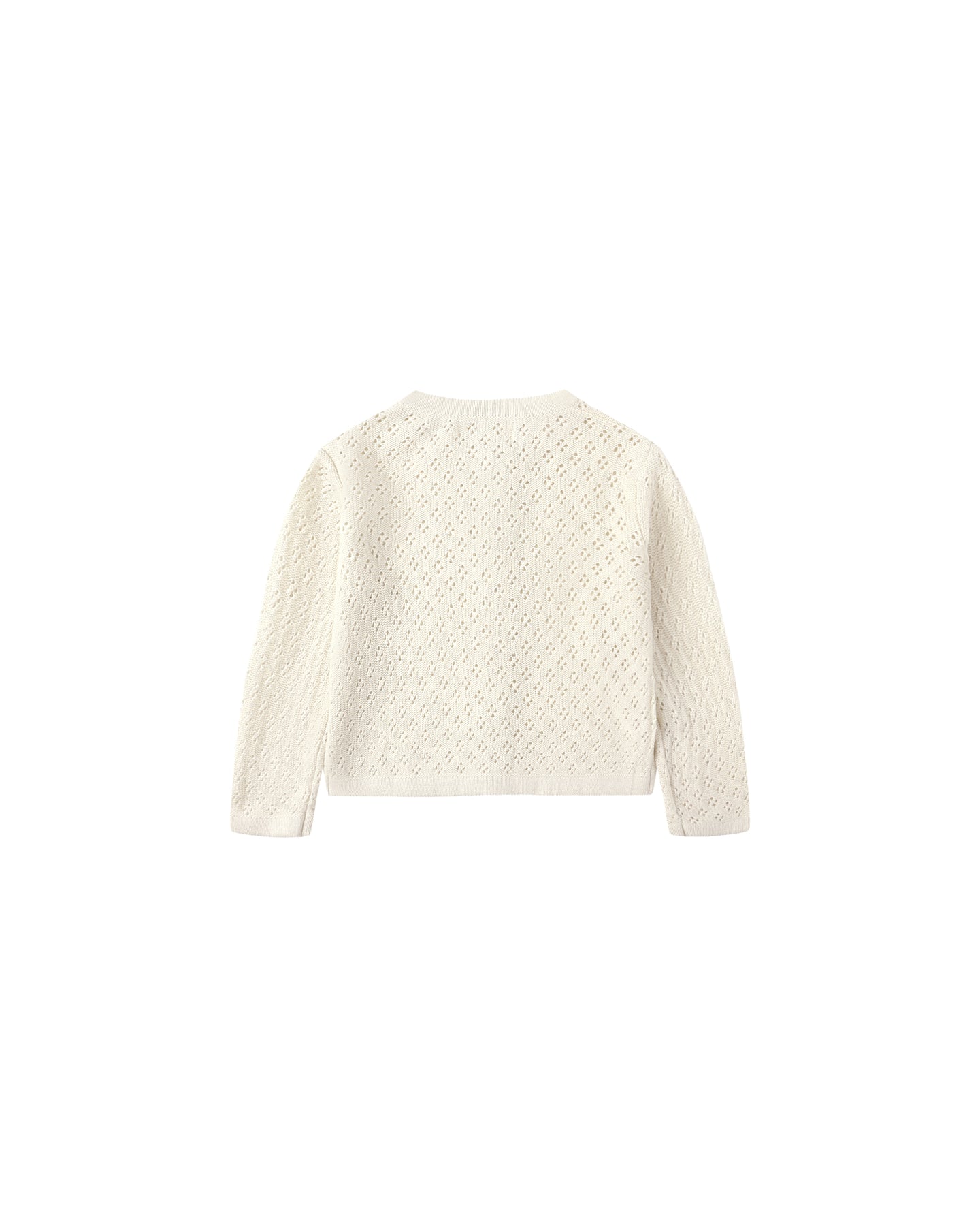 Quincy Mae's darling cardigan showcases a beautiful pointelle knit design and coconut buttons for an extra sweet look.