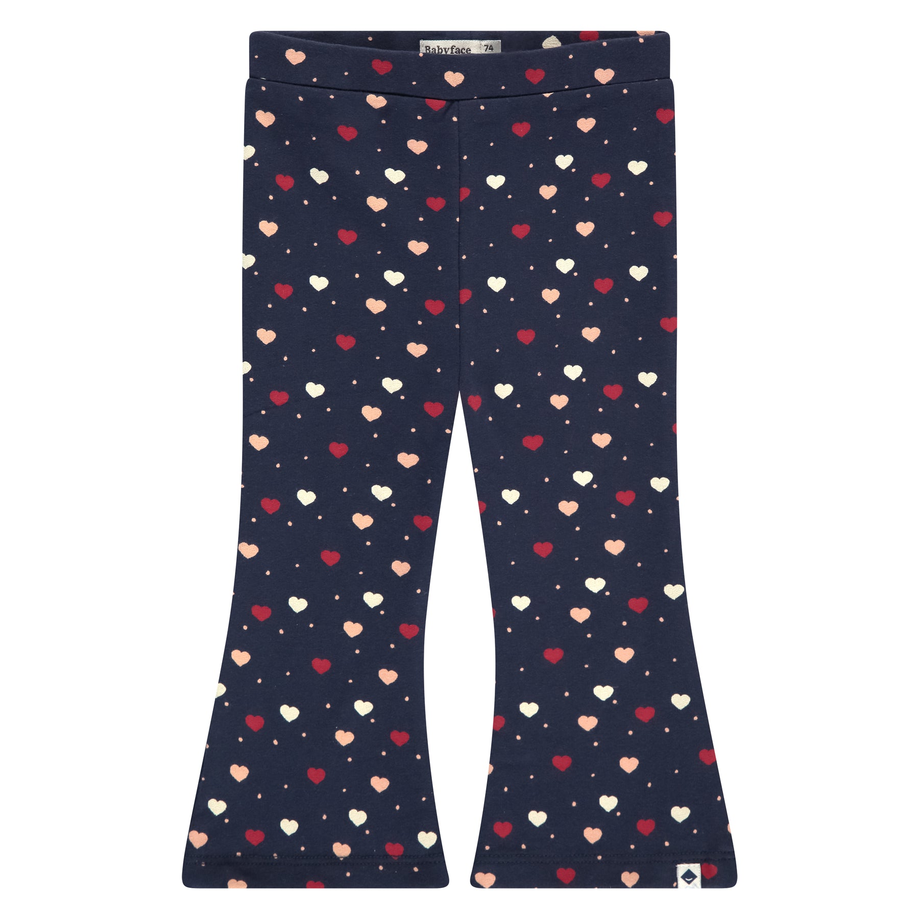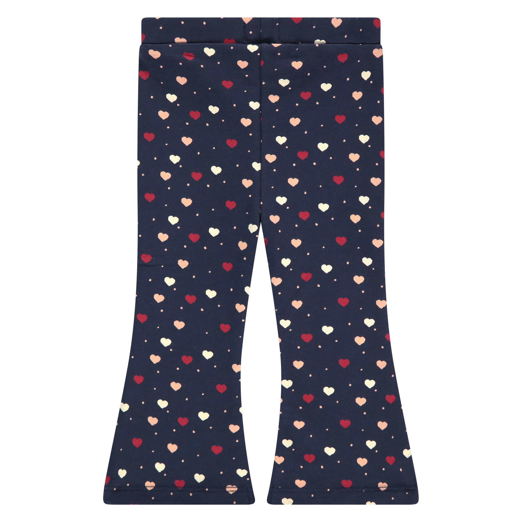 These flared pants from Babyface are warm and cozy in French Terry, in an adorable red and white hearts print on a navy background. Elastic waist.