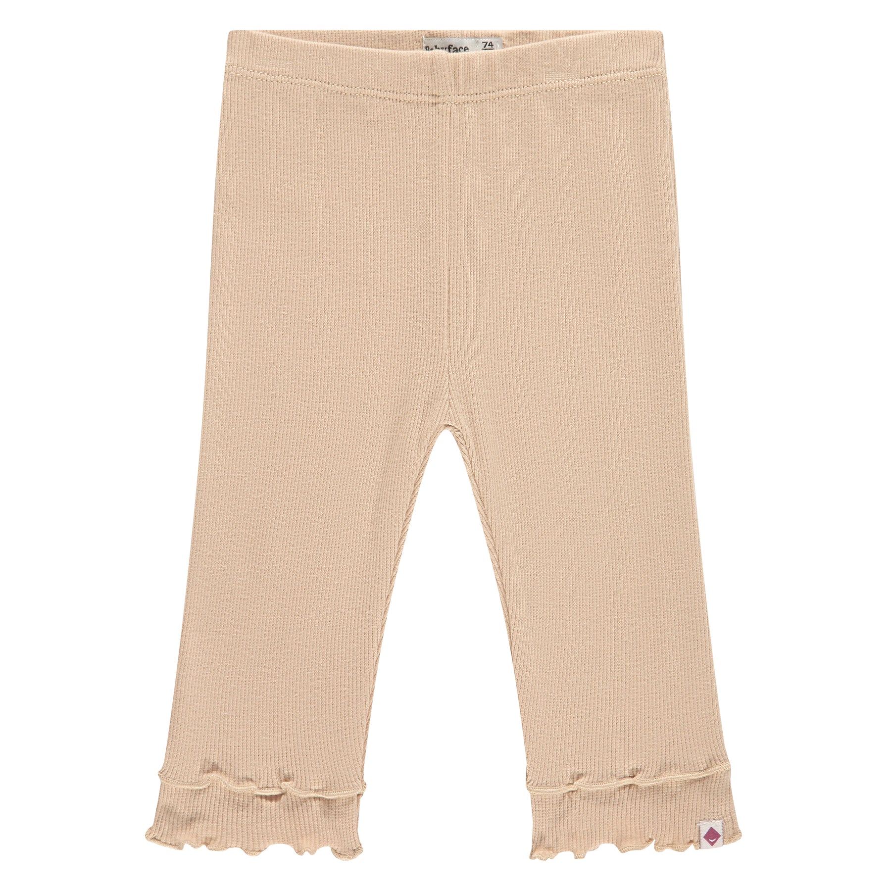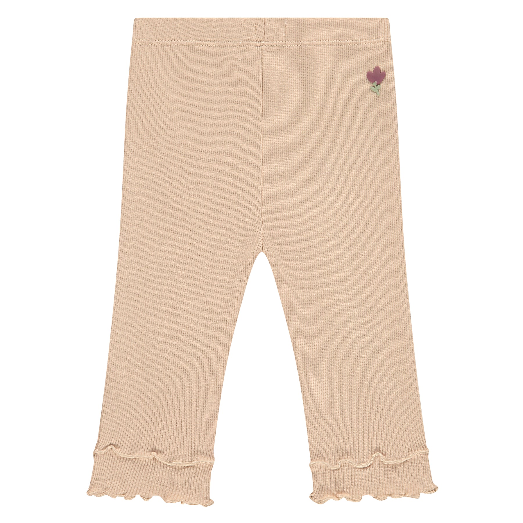 Ribbed leggings with ruffled ankle, with cute flower detail on the back. In Nude.