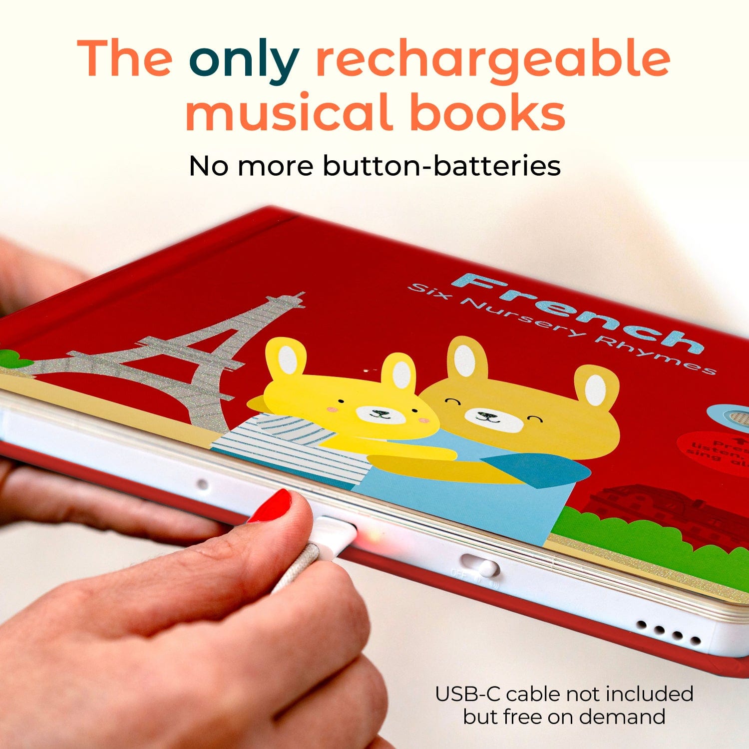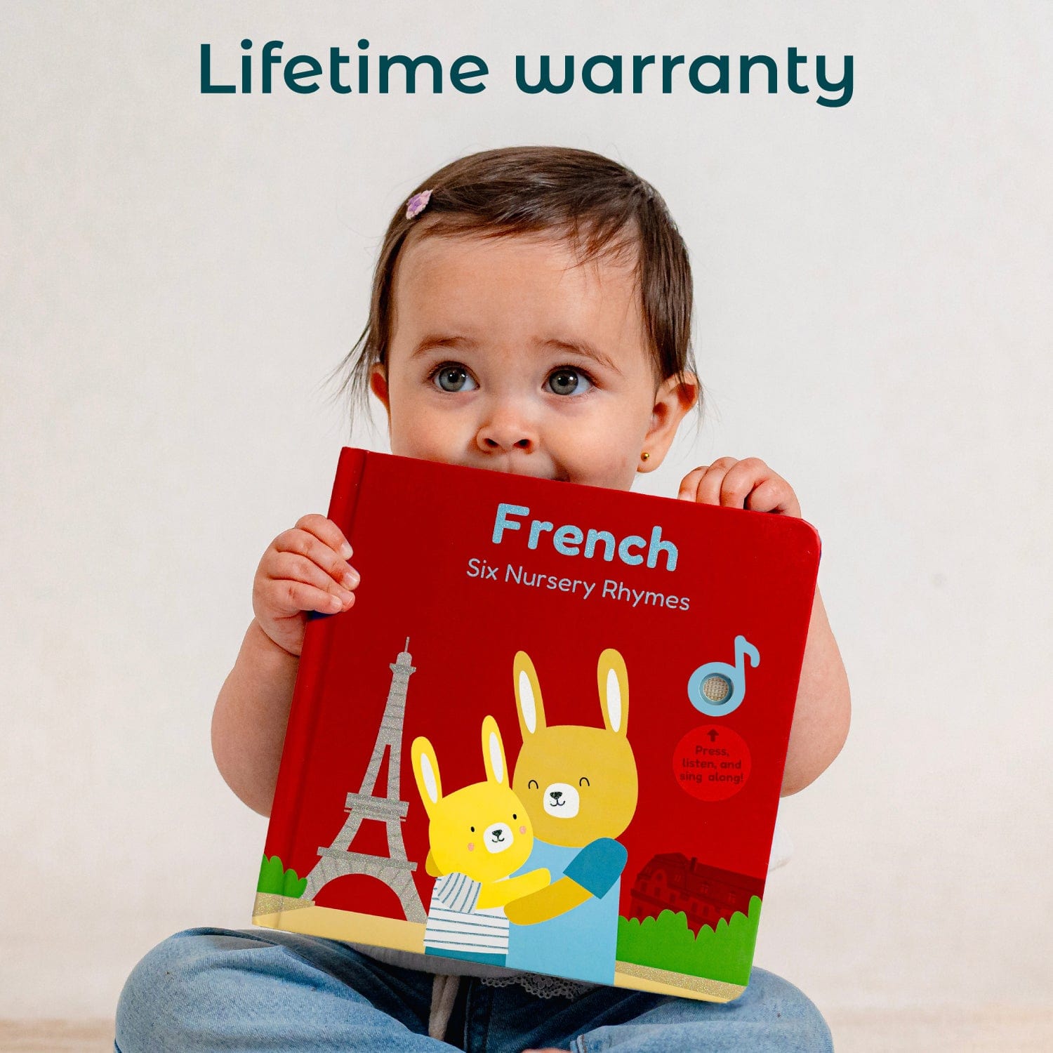 Gently lull your little one to sleep with the timeless tunes of Cali's Books French nursery rhyme collection. Open your child up to a world of new language, sounds, and experiences with our selection of enduring Parisian lullabies. This book features beloved classics such as Frère Jacques, A La Claire Fontaine, Gentil Coquelicot, Au Clair de la Lune, Ah! Vous Dirai-Je, Maman, and Fais Dodo, Colas Mon P'tit Frère. Singing in multiple languages is an enriching activity for all parties involved!